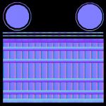 4. Then I press the "V" key to enable the stitching mode, and press the "I" key to change the focus of which island would be snapped to. Since each skinny rectangle pieces share vertices, they will be highlight in green. It might be hard to tell, but around the main faces, there is a little purple edged highlight with a light yellow fill in color to show where the other faces will be moved to. I press the mouse button to confirm this change.